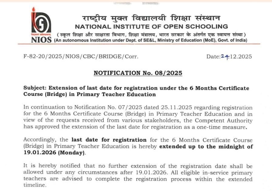 प्राथमिक शिक्षक शिक्षा के 6 माह के ब्रिज कोर्स की रजिस्ट्रेशन डेट बढ़ी – UpdateMarts| PRIMARY KA MASTER | SHIKSHAMITRA | Basic Shiksha News