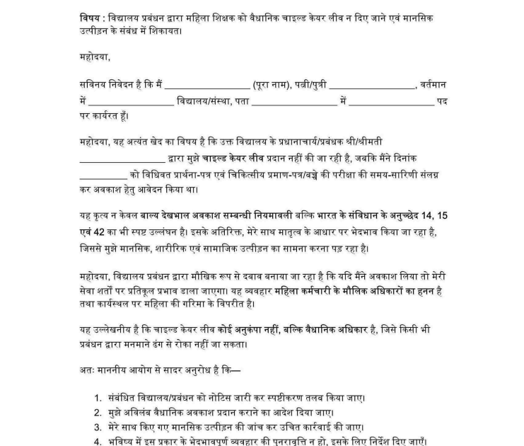 यदि किसी प्रधानाचार्य/प्रबंधक द्वारा महिला शिक्षकों की मेटरनिटी लीव (Maternity Leave), चाइल्ड केयर लीव (CCL), मेडिकल लीव आदि अवैध ...