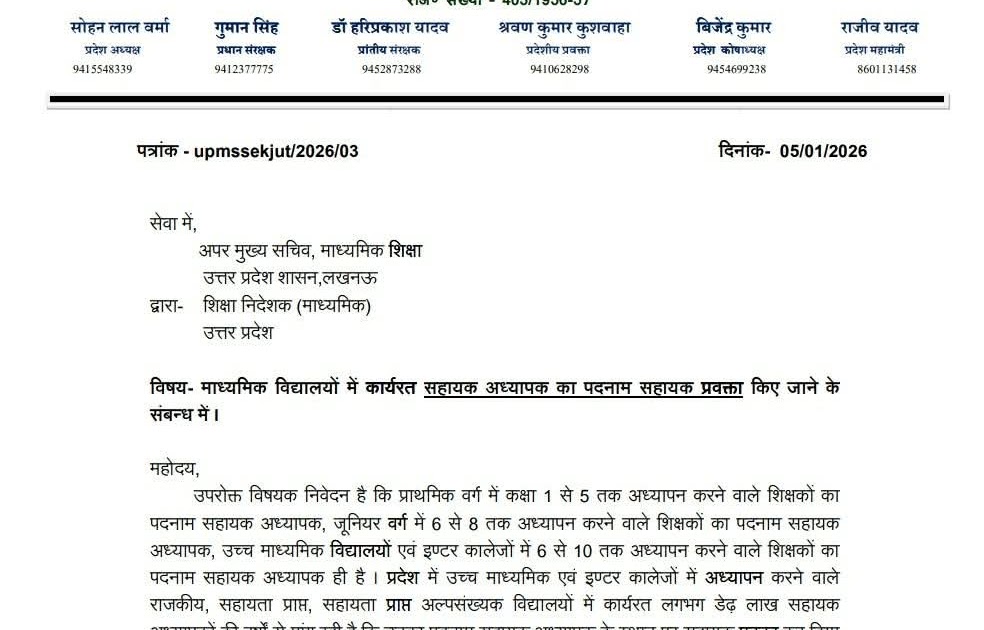 विषय- माध्यमिक विद्यालयों में कार्यरत सहायक अध्यापक का पदनाम सहायक प्रवक्ता किए जाने के संबन्ध में Basic Shiksha Khabar ...
