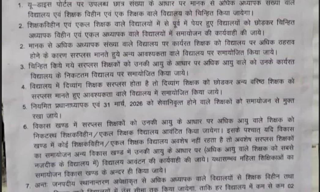 समायोजन के नियम 1. यू-डाइस पोर्टल पर उपलब्ध छात्र संख्या के आधार पर मानक से अधिक अध्यापक संख्या वाले ...