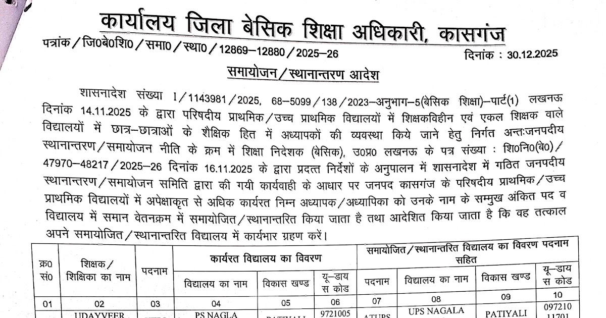 एकल और शिक्षक विहीन विद्यालयों में समायोजित होंगे अध्यापक – UpdateMarts| PRIMARY KA MASTER | SHIKSHAMITRA | Basic Shiksha News