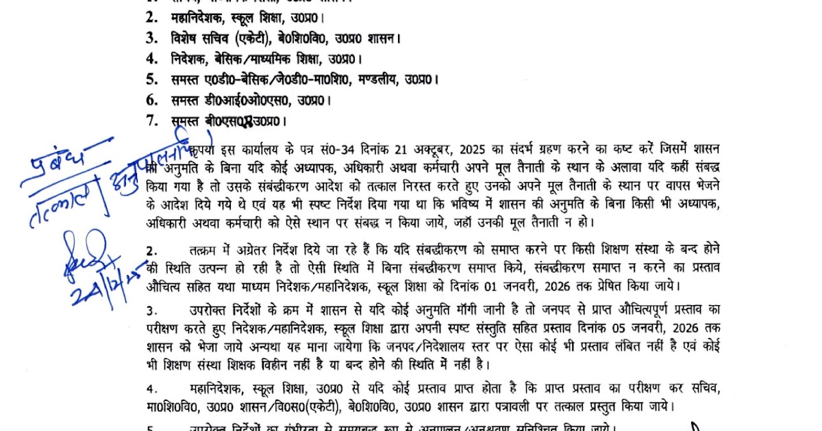 शासन की अनुमति लिये बिना ही विभिन्न कार्यालयों में सम्बद्ध कार्यरत अधिकारियों /कर्मचारियों को सम्बद्धीकरण समाप्त किये जाने के संबंध में। – UpdateMarts| PRIMARY KA MASTER | SHIKSHAMITRA | Basic Shiksha News