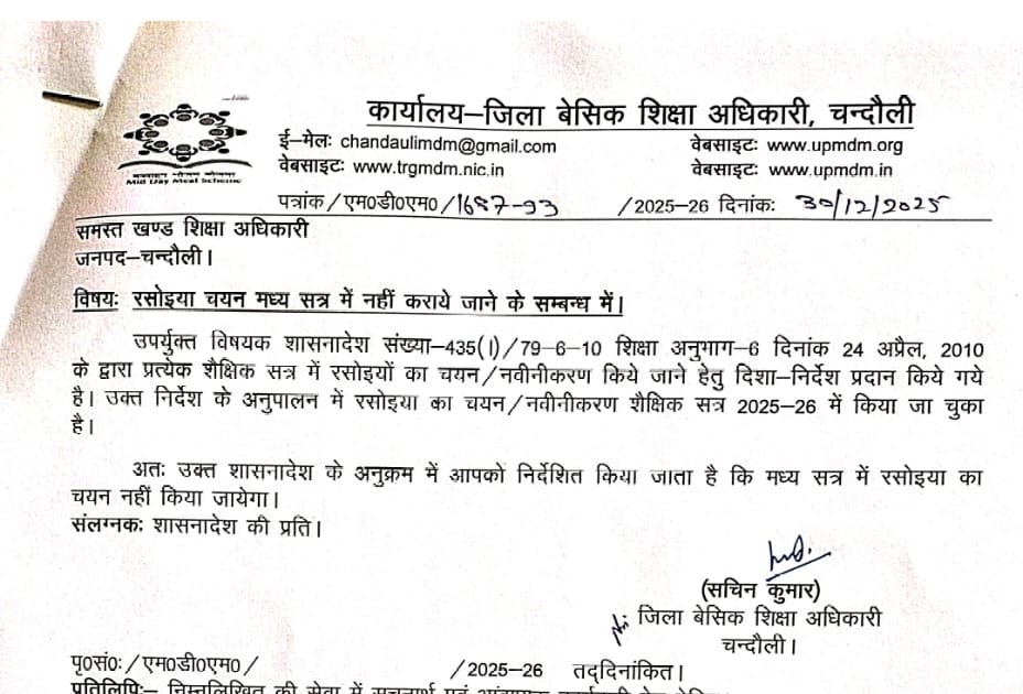 रसोइया चयन मध्य सत्र में नहीं कराये जाने के सम्बन्ध में। – UpdateMarts| PRIMARY KA MASTER | SHIKSHAMITRA | Basic Shiksha News