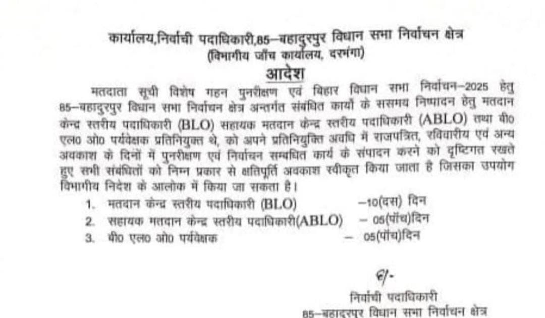 🔥*बिहार में प्रतिकर अवकाश मिलेगा* BLO -10 दिन ABLO- 5 दिन BLO पर्यवेक्षक- 5 दिन UP में कब करेंगे ...