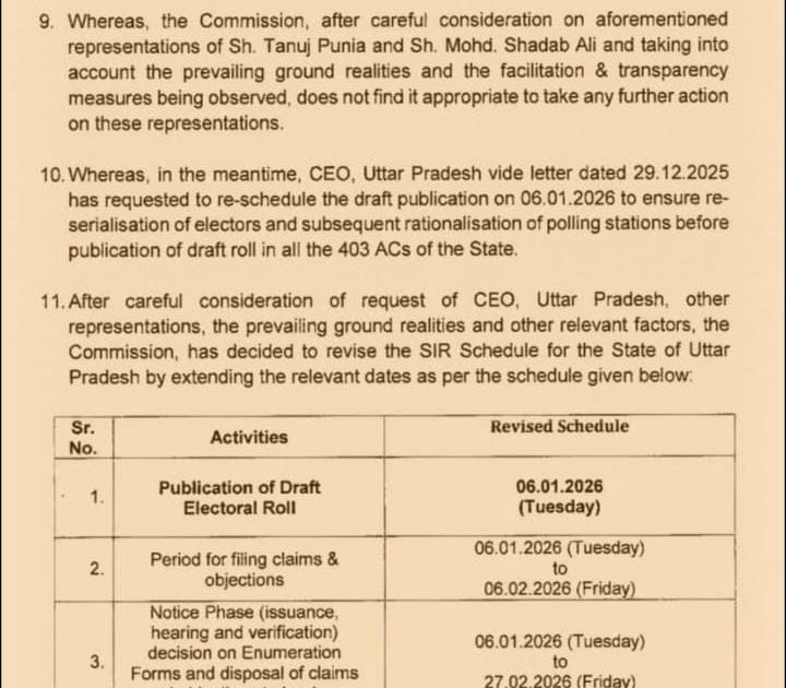 भारत निर्वाचन आयोग ने प्रदेश की मतदाता सूची पुनरीक्षण कार्यक्रम की संशोधित तिथियां जारी कीं, इस तारीख को अंतिम प्रकाशन – UpdateMarts| PRIMARY KA MASTER | SHIKSHAMITRA | Basic Shiksha News