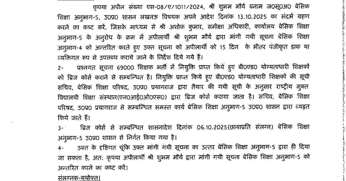 69000 भर्ती के अध्यापकों को ब्रिज कोर्स कराए जाने के संबध में उत्तरप्रदेश शासन से कार्यवाही गई थी जिसका जवाब आज दिया गया हैं। – UpdateMarts| PRIMARY KA MASTER | SHIKSHAMITRA | Basic Shiksha News