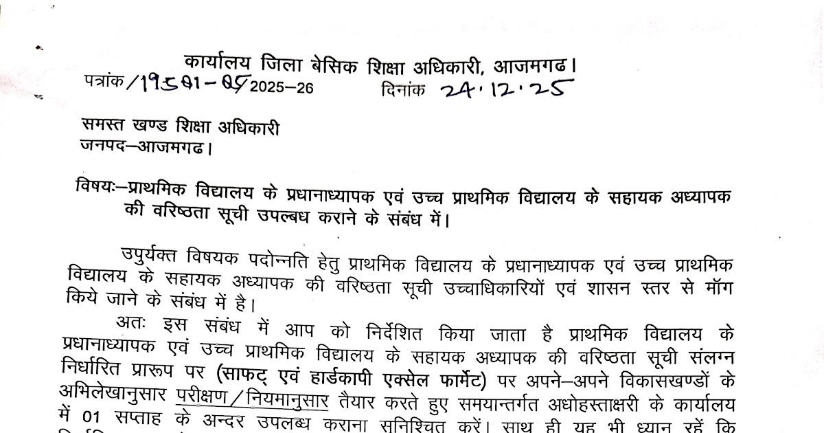 प्राथमिक विद्यालय के प्रधानाध्यापक एवं उच्च प्राथमिक विद्यालय के सहायक अध्यापक की वरिष्ठता सूची उपल्बध कराने के संबंध में। – UpdateMarts| PRIMARY KA MASTER | SHIKSHAMITRA | Basic Shiksha News