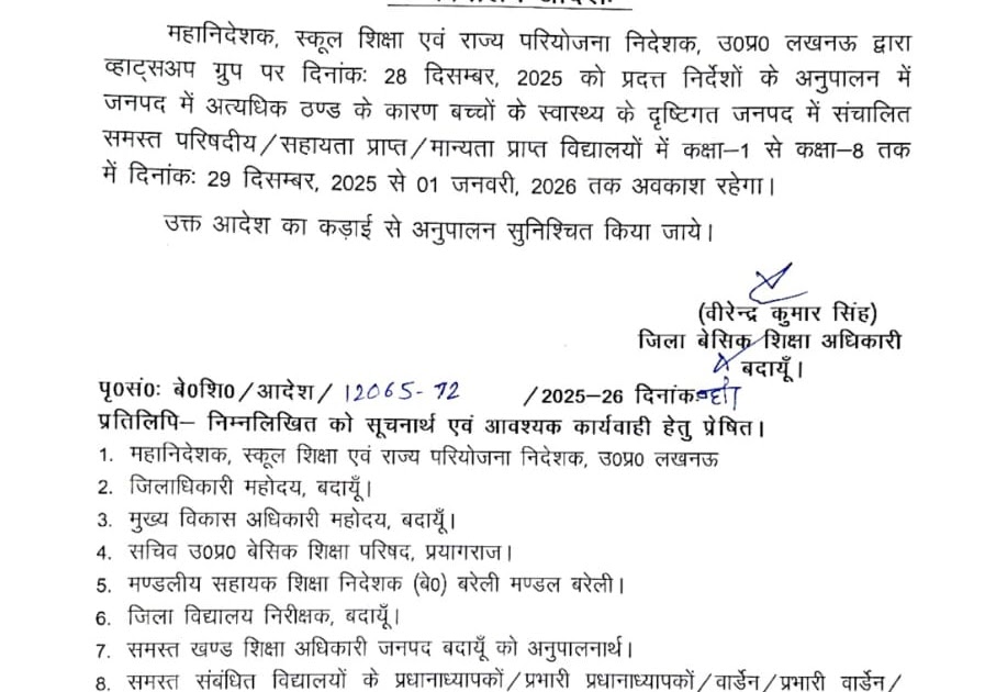 कक्षा 1 से 12 तक के विद्यालय दिनांक 29.12.2025 से दिनांक 01.01.2026 तक बंद रहेंगे: शिक्षा निदेशक बेसिक – UpdateMarts| PRIMARY KA MASTER | SHIKSHAMITRA | Basic Shiksha News