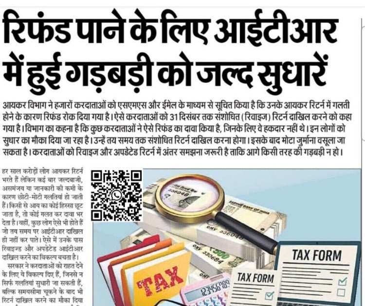 रिफंड पाने के लिए आईटीआर में हुई गड़बड़ी को जल्द सुधारें – UpdateMarts| PRIMARY KA MASTER | SHIKSHAMITRA | Basic Shiksha News