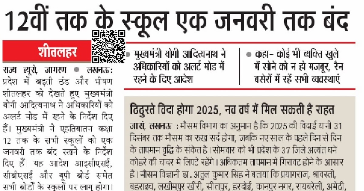 लखनऊ ➡यूपी में 12वीं तक के स्कूल 1 जनवरी तक बंद ➡सीएम ने ठंड में स्कूल बंद करने के ...