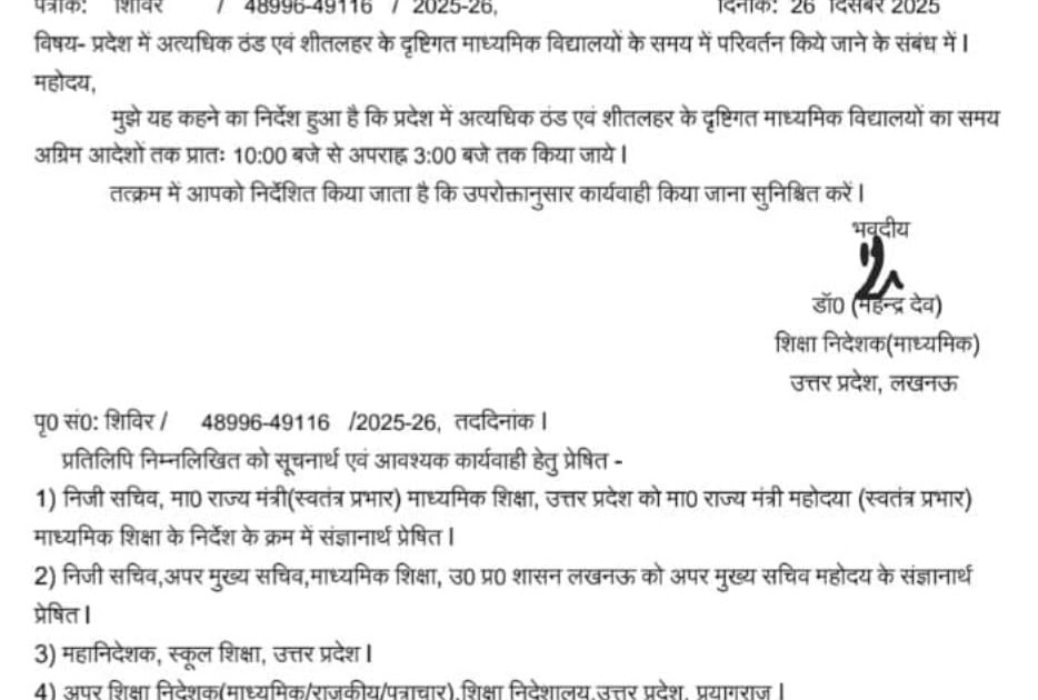 भीषण सर्दी और कोहरे को देखते हुए वाराणसी में कक्षा एक से आठ तक के सभी स्कूल 29 और 30 ...