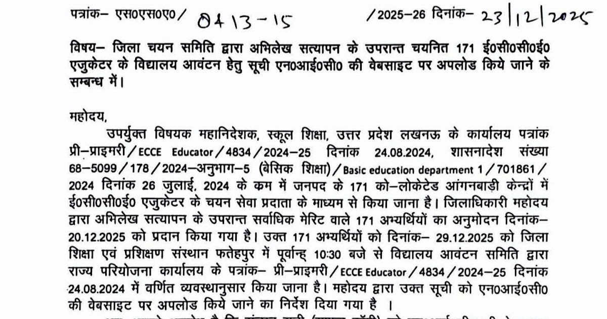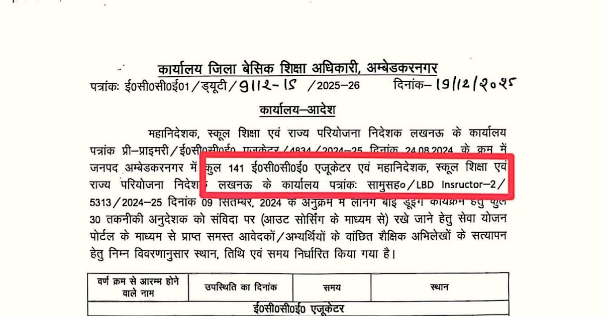 उत्तर प्रदेश ECCE EDUCATOR अम्बेडकरनगर जनपद की शैक्षिक अभिलेख सत्यापन की तिथि जारी… – UpdateMarts| PRIMARY KA MASTER | SHIKSHAMITRA | Basic Shiksha News