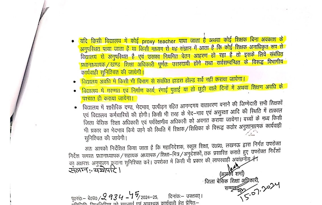 परिषदीय विद्यालयों में कार्यरत प्रधानाध्यापकों / अध्यापकों के कार्य एवं दायित्वों के सम्बन्ध में। परिषदीय विद्यालयों में कार्यरत प्रधानाध्यापकों / ...