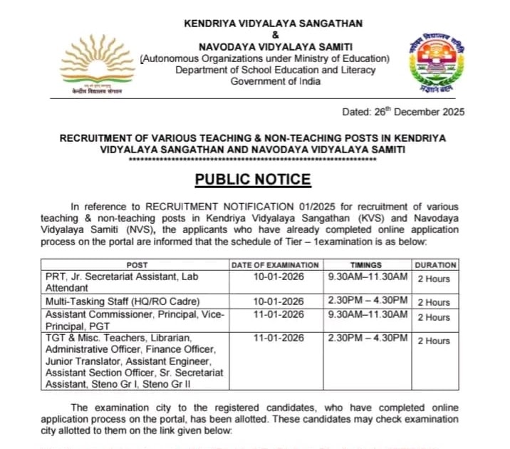 KVS & NVS 2025 Tier 1 Official Exam Schedule Notice जारी – UpdateMarts| PRIMARY KA MASTER | SHIKSHAMITRA | Basic Shiksha News