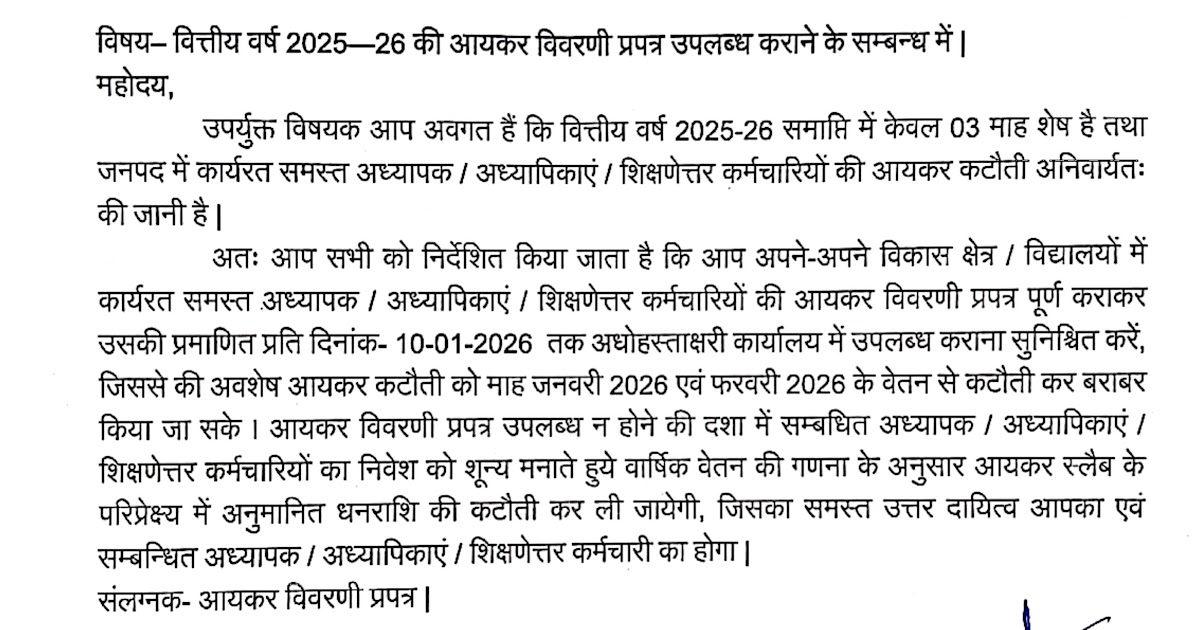 वित्तीय वर्ष 2025-26 की आयकर विवरणी प्रपत्र उपलब्ध कराने के सम्बन्ध में। – UpdateMarts| PRIMARY KA MASTER | SHIKSHAMITRA | Basic Shiksha News