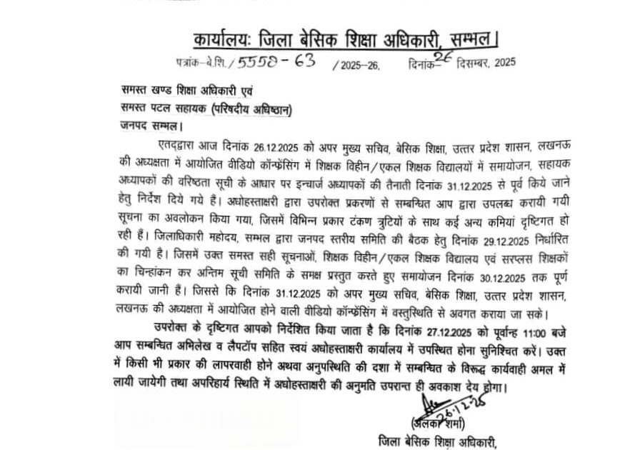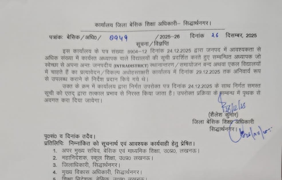 *शिक्षकों के समायोजन 3. 0 के संबंध में…* आज दिनांक 26.12.2025 को अपर मुख्य सचिव, बेसिक शिक्षा, उत्तर प्रदेश शासन, ...