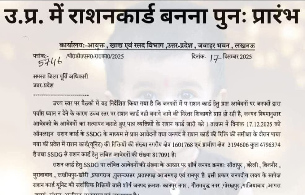 ➡️लखनऊ।⬅️ राशनकार्ड से वंचित लोगों के लिए बड़ी सौगात। हर पात्र परिवारों का बनेगा राशनकार्ड। परिवार के किसी सदस्य का ...