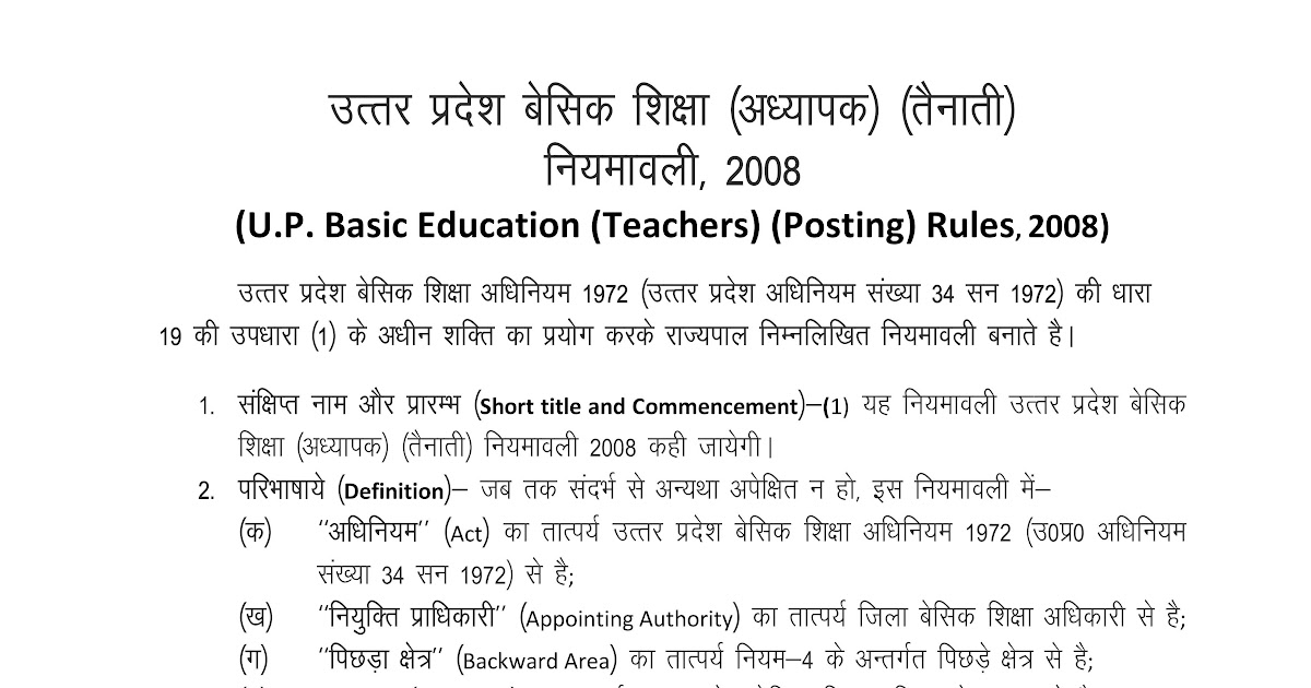 उत्तर प्रदेश बेसिक शिक्षा (अध्यापक) (तैनाती) नियमावली, 2008 (U.P. Basic Education (Teachers) (Posting) Rules, 2008) Basic Shiksha Khabar | ...