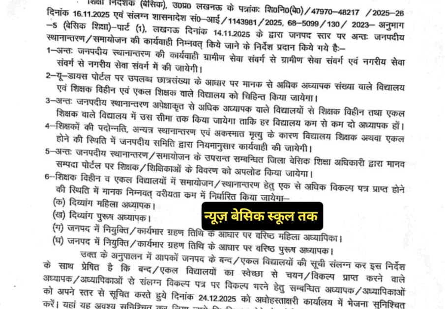 जिले में एकल या शिक्षक विहीन विद्यालयों में सरप्लस टीचर्स के ट्रांसफर के संबंध में आज का आदेश।*👆 – UpdateMarts| PRIMARY KA MASTER | SHIKSHAMITRA | Basic Shiksha News