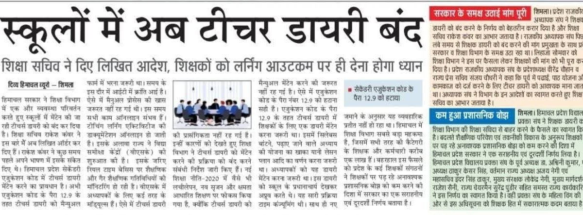 हिमाचल प्रदेश: स्कूलों में अब टीचर डायरी बंद – UpdateMarts| PRIMARY KA MASTER | SHIKSHAMITRA | Basic Shiksha News