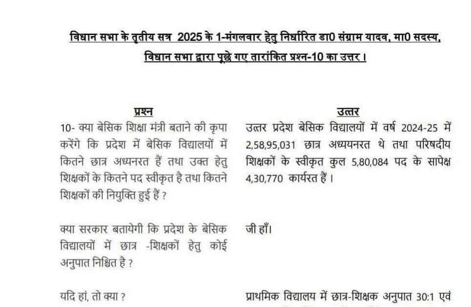 7 सालों में पहली बार सदन में बेसिक शिक्षा मंत्री ने स्वीकार्य किया कि रिक्त पदों पर भर्ती करेंगे ...