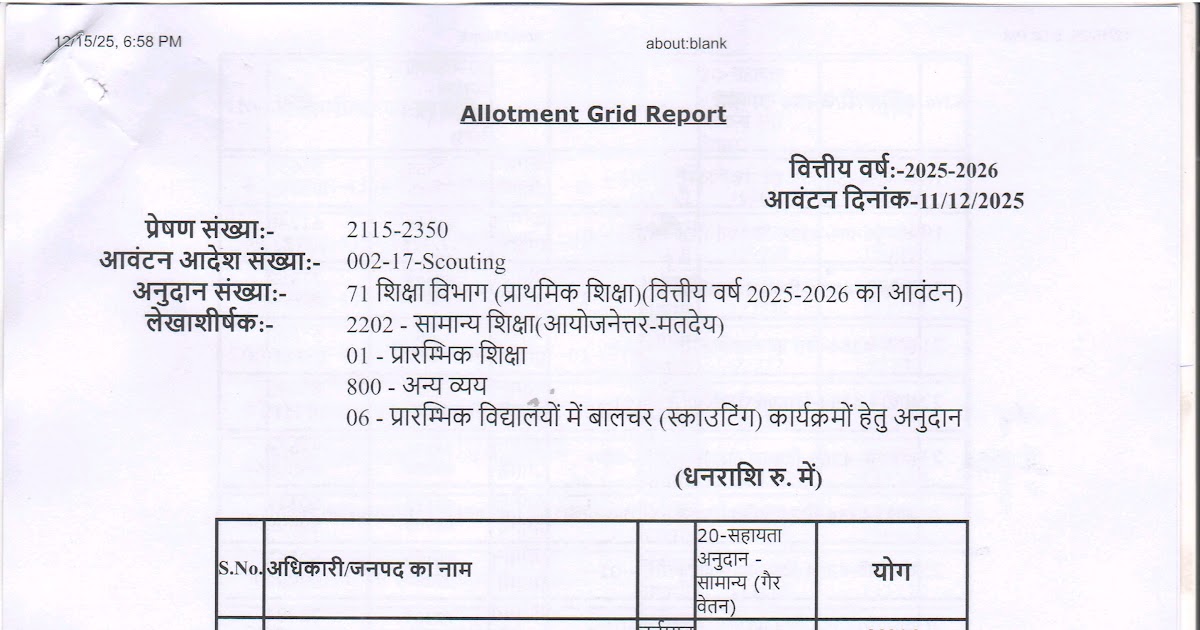 वित्तीय वर्ष 2025-26 में परिषदीय विद्यालयों में बालचर (स्काउटिंग) कार्यक्रमों के संचालन हेतु द्वितीय किश्त के रूप में स्वीकृति धनराशि के आवंटन के सम्बन्ध में। – UpdateMarts| PRIMARY KA MASTER | SHIKSHAMITRA | Basic Shiksha News