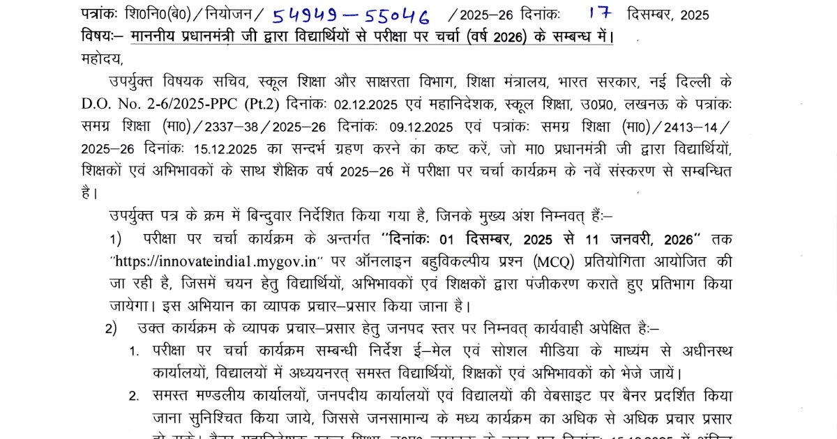 माननीय प्रधानमंत्री जी द्वारा विद्यार्थियों से परीक्षा पर चर्चा (वर्ष 2026) के सम्बन्ध में। – UpdateMarts| PRIMARY KA MASTER | SHIKSHAMITRA | Basic Shiksha News