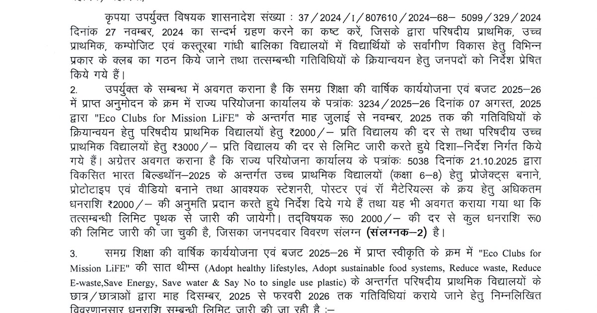 समग्र शिक्षा के अन्तर्गत विद्यालयों में गठित Eco Clubs for Mission LiFE हेतु धनराशि प्रेषण के सम्बन्ध में। – UpdateMarts| PRIMARY KA MASTER | SHIKSHAMITRA | Basic Shiksha News