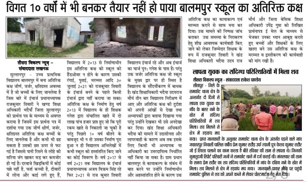 विगत 10 वर्षों में भी बनकर तैयार नहीं हो पाया बालमपुर स्कूल का अतिरिक्त कक्ष