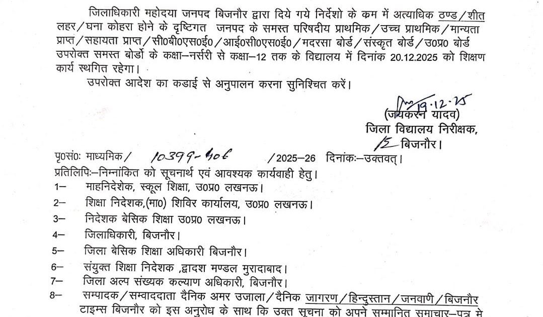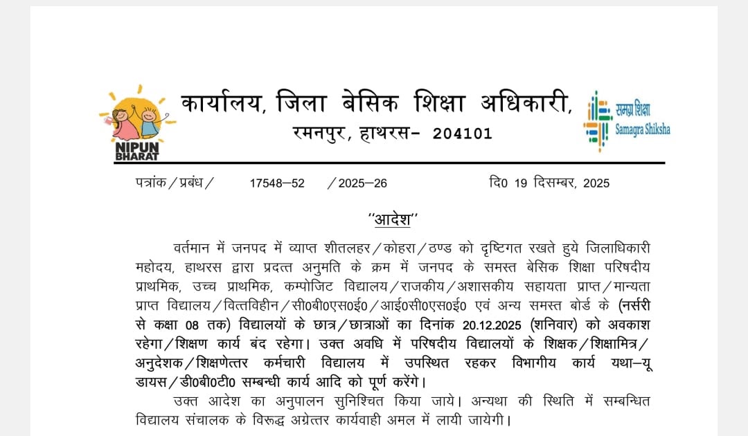 जनपद मे दिनांक 19.12.2025 & 20.12.2025 को शीत अवकाश घोषित – UpdateMarts| PRIMARY KA MASTER | SHIKSHAMITRA | Basic Shiksha News