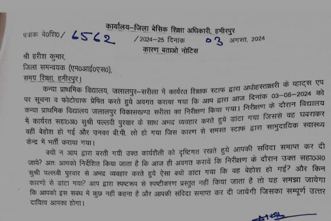 जिला समन्वयक को कारण बताओ नोटिस जारी, जानें वजह