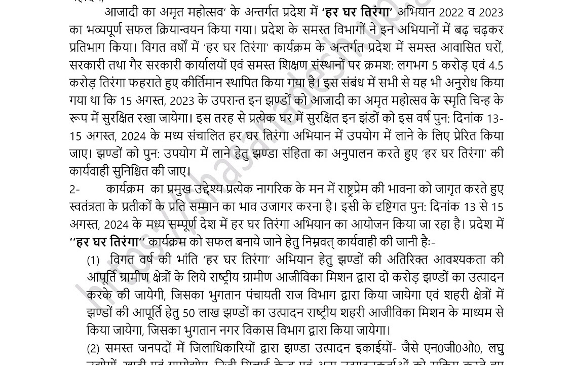 हर घर तिरंगा अभियान 2024 🇮🇳 के संबंध में शासनादेश जारी