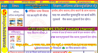 Teacher diary : दिनांक 03 अगस्त, 2024 कक्षा- 01, 02, 03, 04, 05 की भरी हुई शिक्षक , देखें Teacher ...