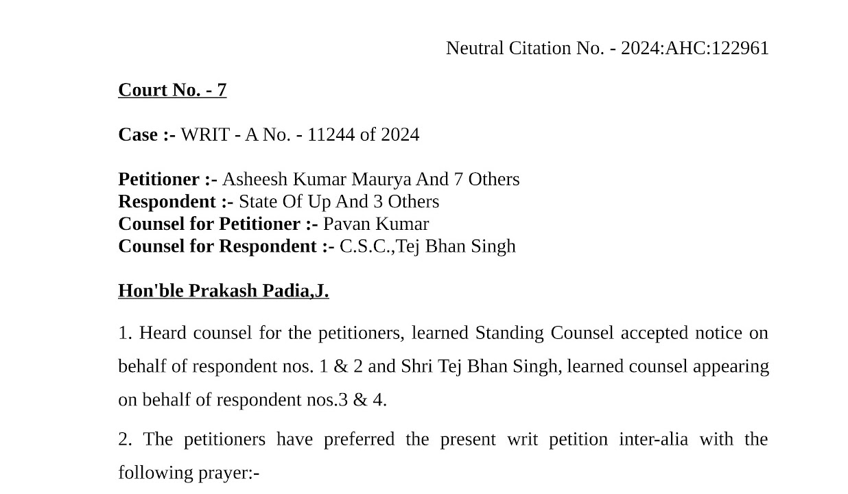 जौनपुर इंचार्ज प्रधानाध्यापक को वेतन और एरियर भुगतान करने का आदेश माननीय उच्च न्यायालय इलाहाबाद द्वारा पारित की किया, ऑर्डर की कॉपी देखे
