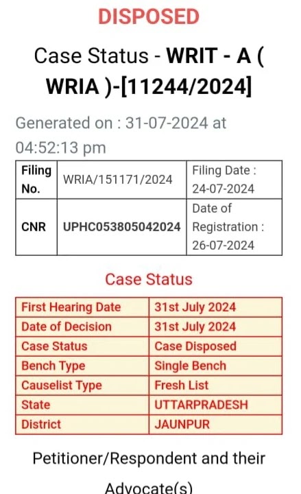 इंचार्ज प्रधानाध्यापक जनपद जौनपुर की याचिका माननीय उच्च न्यायालय इलाहाबाद द्वारा याचियों को समान वेतन एरियर सहित देने का आदेश पारित, ऑर्डर हुआ रिजर्व