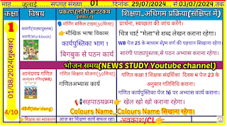 दिनांक 01 अगस्त, 2024 कक्षा- 01, 02, 03, 04, 05 की भरी हुई शिक्षक , देखें
