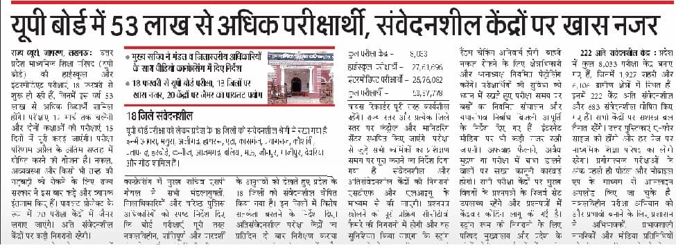 यूपी बोर्ड में 53 लाख से अधिक परीक्षार्थी, संवेदनशील केंद्रों पर खास नजर – UpdateMarts| PRIMARY KA MASTER | SHIKSHAMITRA | Basic Shiksha News