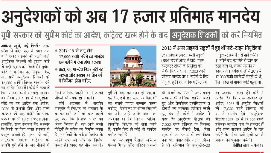 अनुदेशकों को अब 17 हजार प्रतिमाह मानदेय – UpdateMarts| PRIMARY KA MASTER | SHIKSHAMITRA | Basic Shiksha News