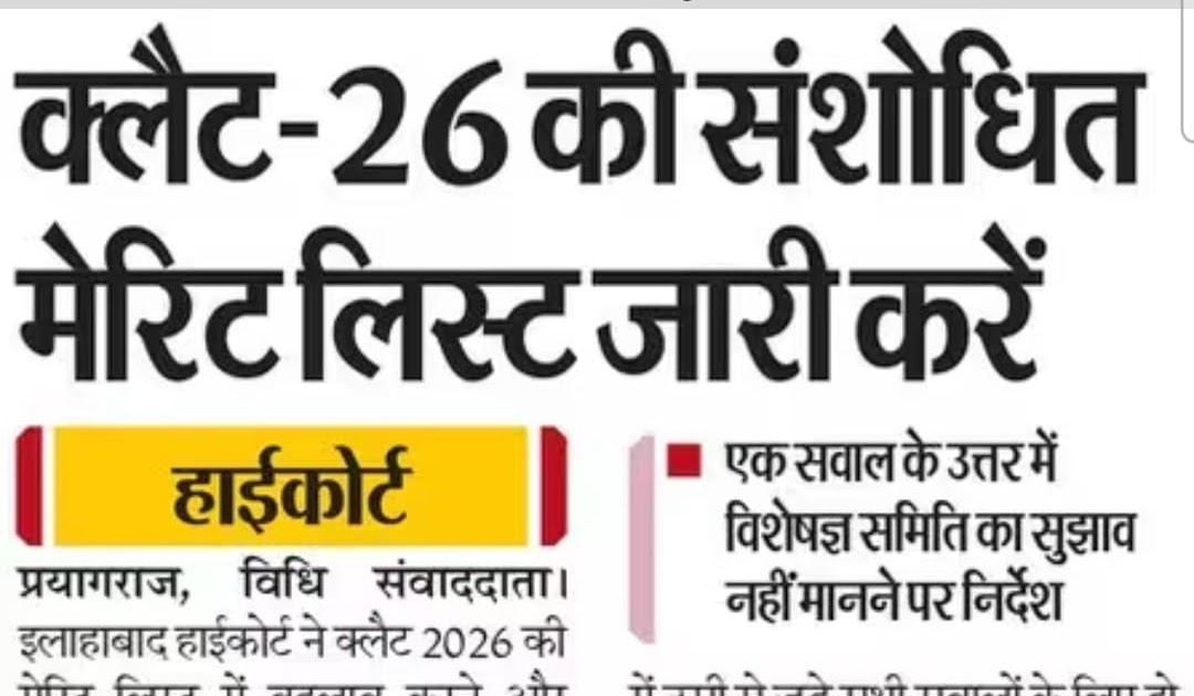क्लैट-26 की संशोधित मेरिट लिस्ट जारी करें – UpdateMarts| PRIMARY KA MASTER | SHIKSHAMITRA | Basic Shiksha News