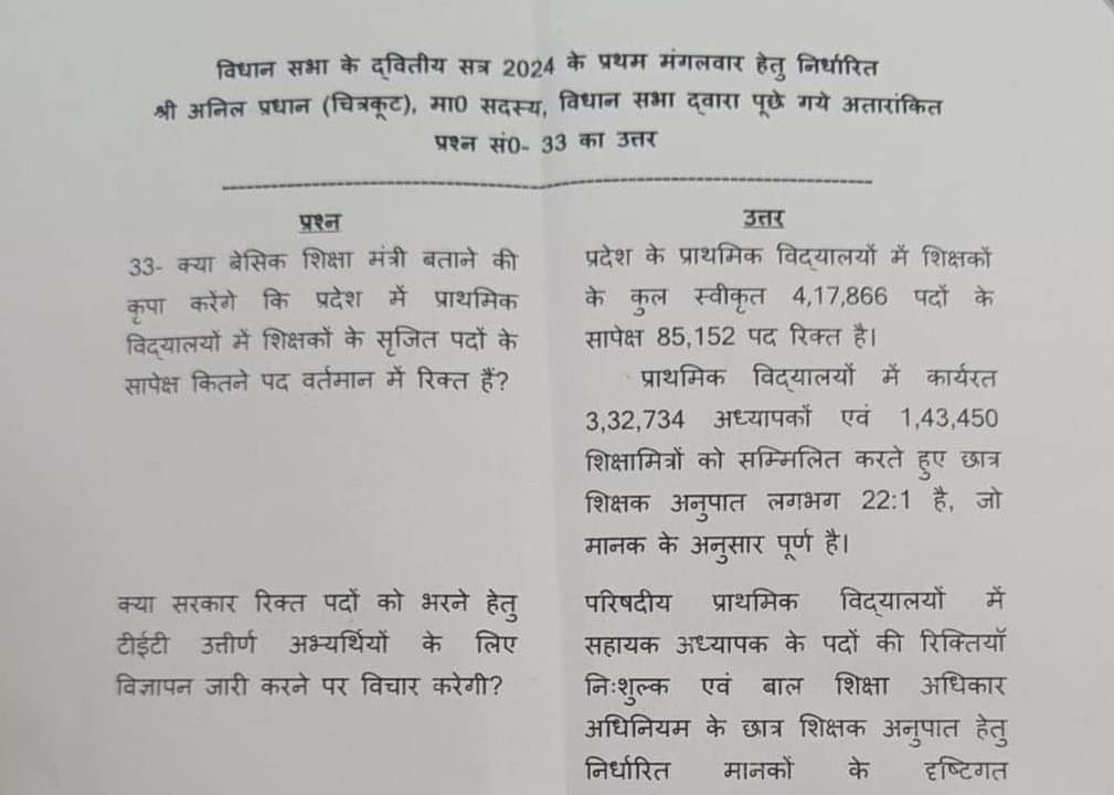 बेसिक शिक्षा मन्त्री जी से पदोन्नति के संबंध में पूछे गए प्रश्न का उत्तर👇