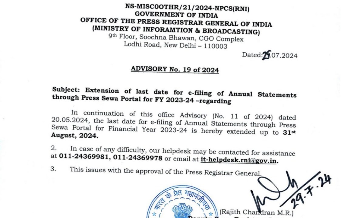 ITR दाखिल करने की अंतिम तारीख बढ़ी देखे महालेखापरीक्षक का आदेश Last date for filing Annual Statement for FY 2023-24 ...
