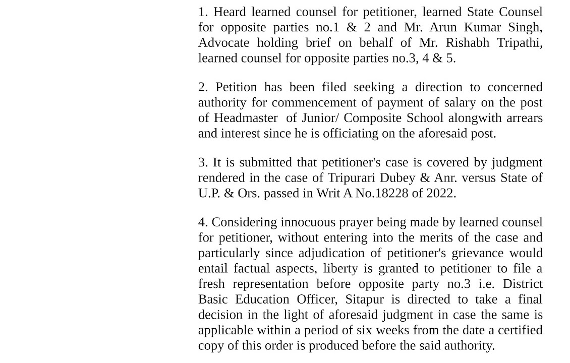 माननीय उच्च न्यायालय की लखनऊ खंडपीठ ने दिया ऐतिहासिक निर्णय। जिला बेसिक शिक्षा अधिकारी सीतापुर से इंचार्ज प्रधानाध्यापक को प्रधानाध्यापक ...
