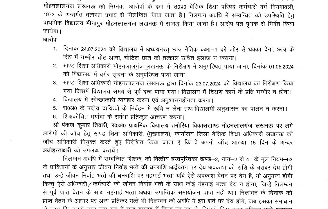 छात्र के साथ मारपीट मामले में शिक्षक का निलंबन आदेश छात्र के साथ मारपीट मामले में शिक्षक का निलंबन आदेश ...