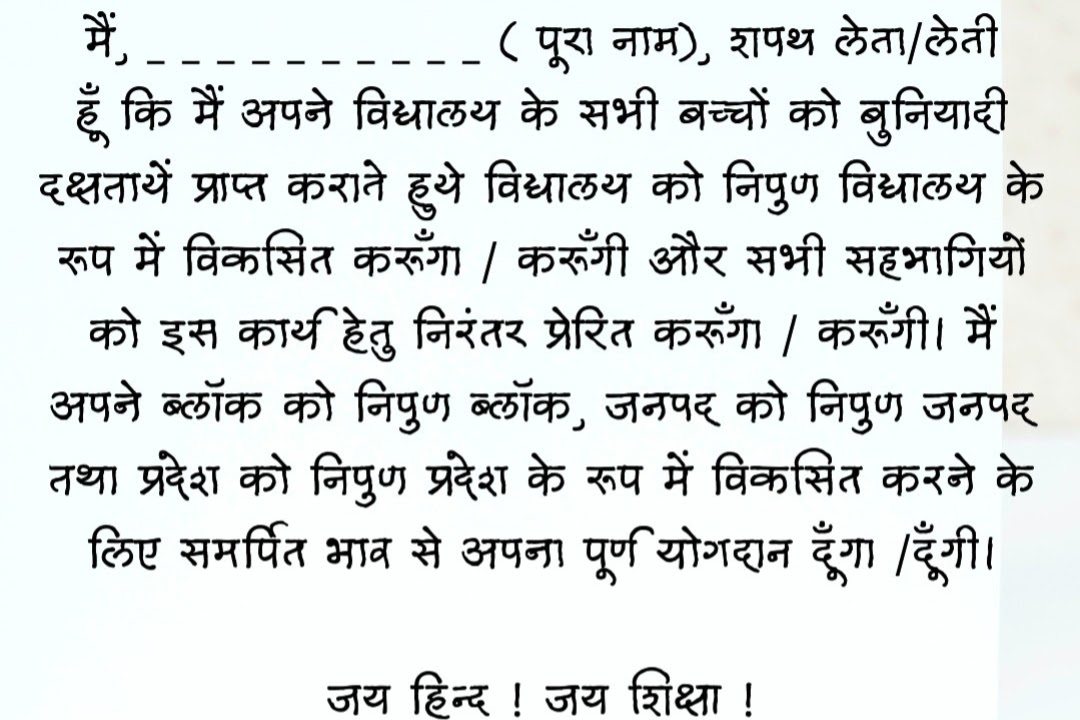 परिषदीय विद्यालयों में आज शिक्षा सप्ताह अंतर्गत दिलाई जाएगी निपुण शपथ, करें डाउनलोड