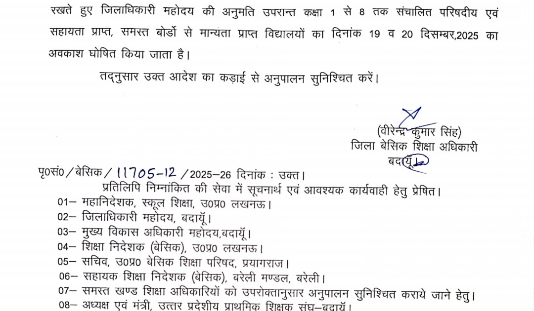 इस जनपद में 20 दिसम्बर तक अवकाश घोषित – UpdateMarts| PRIMARY KA MASTER | SHIKSHAMITRA | Basic Shiksha News