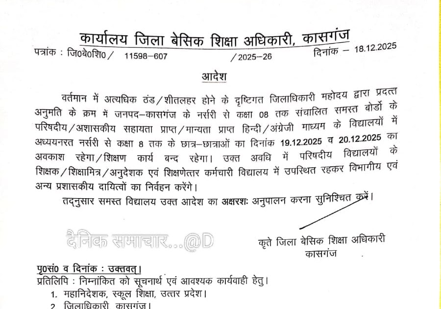 इस जनपद में 20 दिसम्बर तक अवकाश घोषित, शिक्षक रहेंगे स्कूल में मौजूद – UpdateMarts| PRIMARY KA MASTER | SHIKSHAMITRA | Basic Shiksha News