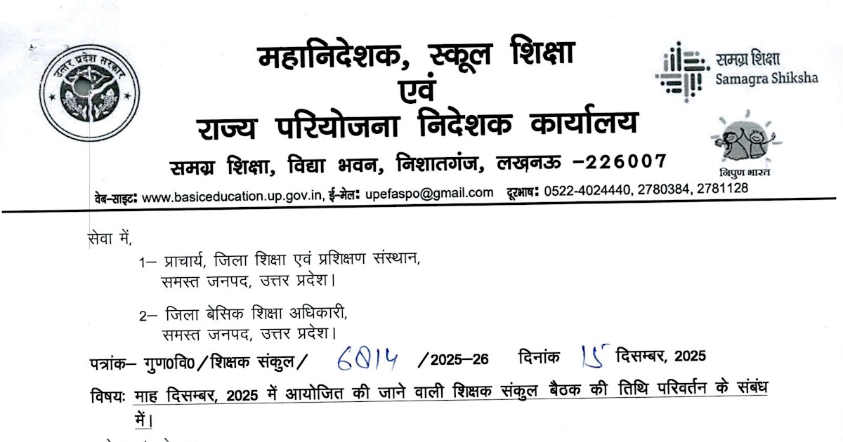 माह दिसम्बर, 2025 में आयोजित की जाने वाली शिक्षक संकुल बैठक की तिथि परिवर्तन के संबंध में, देखें कब होगी यह बैठक – UpdateMarts| PRIMARY KA MASTER | SHIKSHAMITRA | Basic Shiksha News