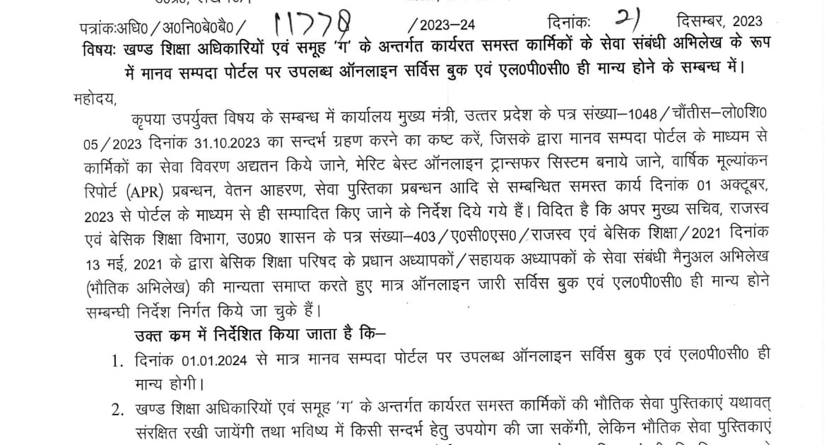 *ऑफलाइन सर्विस बुक की मान्यता खत्म होने संबंधी स्कूल शिक्षा महानिदेशक का आदेश, केवल मानव संपदा पर उपलब्ध ऑनलाइन ...