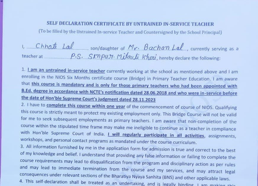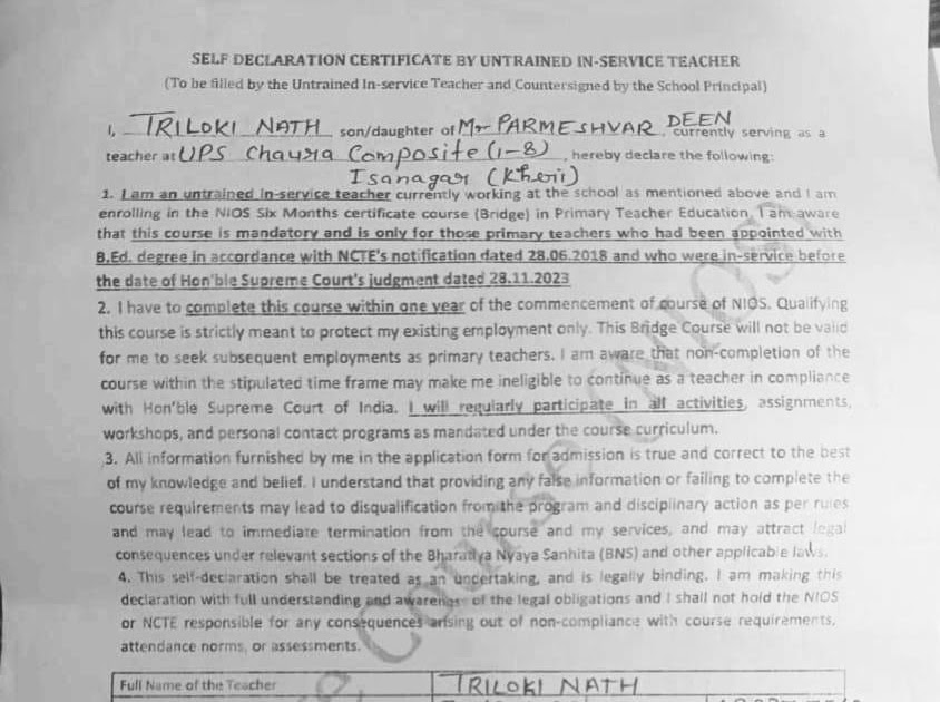 ब्रिज कोर्स आवेदन करते समय सेल्फ डिक्लेरेशन फॉर्म (अपने इंचार्ज या खंड शिक्षा अधिकारी से प्रमाणित करवाने के बाद) – UpdateMarts| PRIMARY KA MASTER | SHIKSHAMITRA | Basic Shiksha News