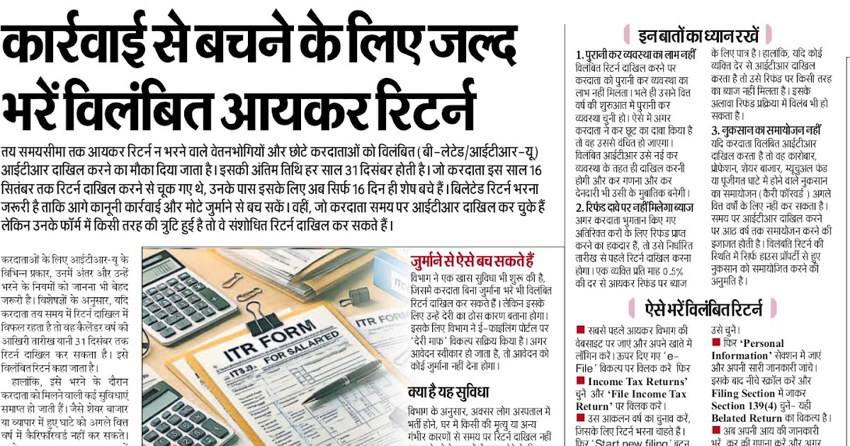 कार्रवाई से बचने के लिए जल्द भरें विलंबित आयकर रिटर्न तय समयसीमा तक आयकर रिटर्न न भरने वाले वेतनभोगियों ...